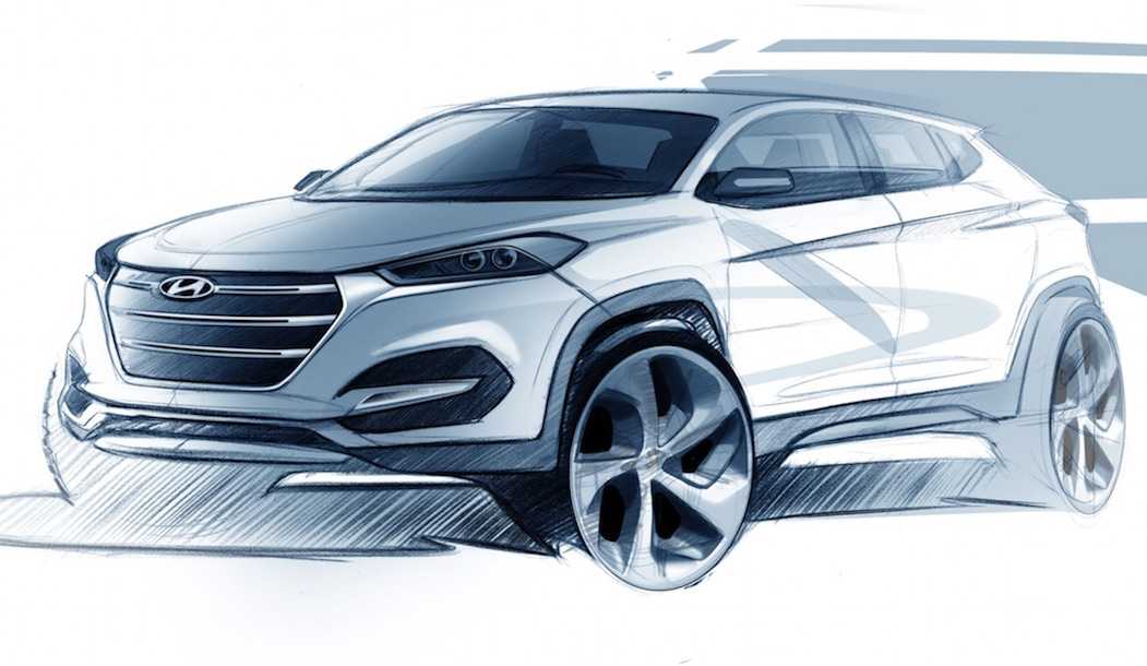 Từ những bức ảnh rò rỉ trước đó cùng bản vẽ phác của chiếc xe vừa được Hyundai công bố, có thể thấy rằng Tucson mới sẽ có dáng cao và thể thao hơn, một số chi tiết được thiết kế tinh tế hơn như các đường nét gọn gàng và lưới tản nhiệt lục giác đơn khung mạ chrome lớn.
